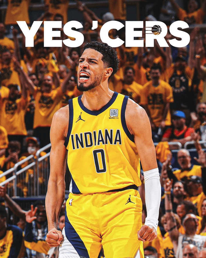 赛后,步行者官推晒出泰瑞斯-哈利伯顿的赛场照并配文:下一站,抢七!